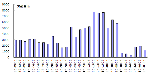 據(jù)英國克拉克松公司統(tǒng)計,今年第一季度,全球共成交新船164艘、1206.4萬載重噸,較去年同期增長96.2%。但是,月均成交量僅為402.1萬載重噸,與去年全年月均成交量(385.0萬載重噸)相比僅增長4.5%,與去年下半年月均成交量(603.2萬載重噸)相比卻下滑33.3%。從上述數(shù)據(jù)來看,一季度市場充其量是2009年下半年以來行情的延續(xù),總的來看,當期市場形勢依舊嚴峻。