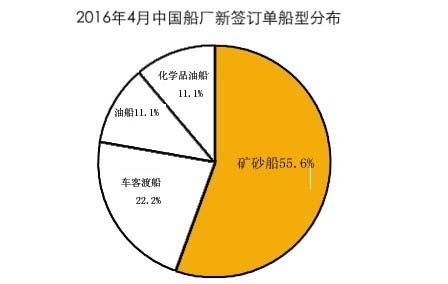 按船廠分析,2016年4月,接單量排名前三位的船廠依次為新?lián)P子造船、北船重工和中航威海船廠,接單量分別為29.1萬(wàn)、19.4萬(wàn)和14.8萬(wàn)CGT。