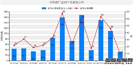 據(jù)克拉克松統(tǒng)計(jì),2016年1月,中國船廠接獲新船訂單僅10艘,32.0萬CGT,環(huán)比下降了70.6%,同比下降了60.9%。