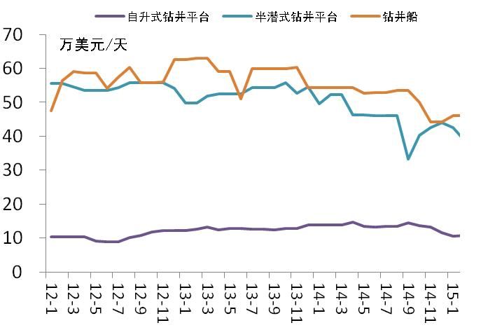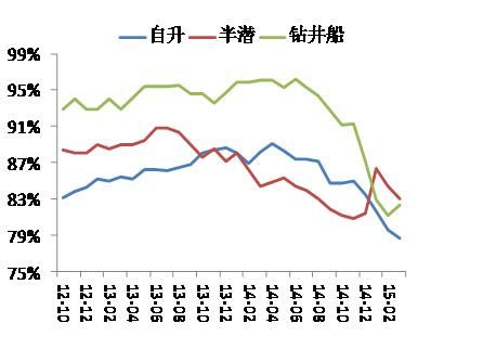 2)2015年以來海工裝備運營市場持續(xù)惡化,主要海工裝備利用率和租金水平繼續(xù)下跌。
