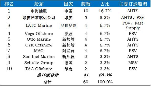 3)中國中海油服訂造10艘三用工作船,占1-4月海工船訂單總量的16.7%。
