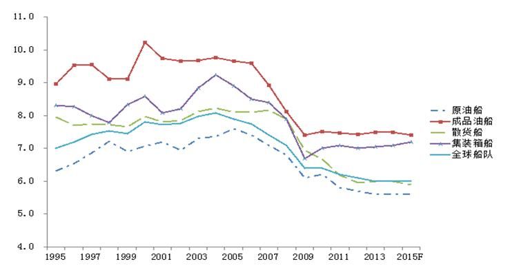 國際航運市場運力過剩依舊十分嚴重,相比2004年當前運力過剩率高達25%。航運公司仍處于運力消化的關(guān)鍵時期。