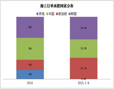 1)2015年1-4月,海工裝備訂單主要來自亞洲國家。