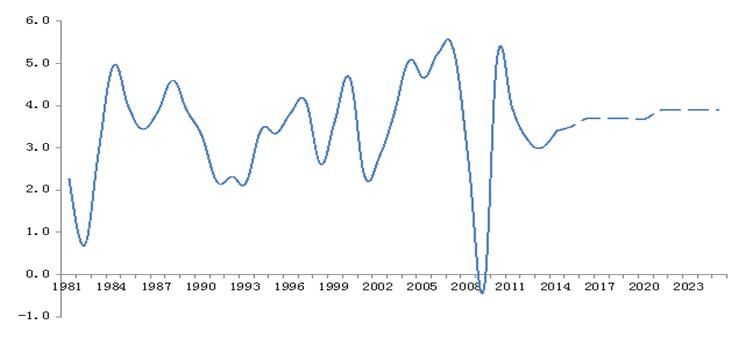 1)IMF在4月份預測,2015年世界GDP增速3.5%;發(fā)達經(jīng)濟體增長將從2008-2014年的1.3%略升至2015-2020年的1.6%;新興經(jīng)濟體增長將從從2008-2014年的6.5%降至2015-2020年的5.2%。