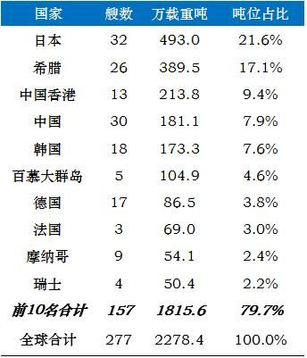 2)目前世界排名前十造船企業(yè)以韓日船廠為主,中國僅有大船重工一家船廠。