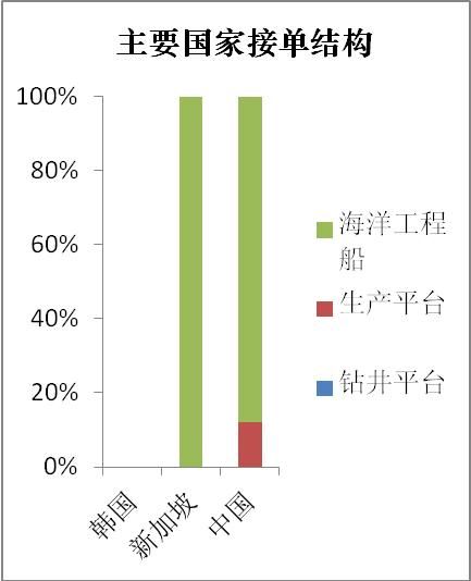 1)2014年1-4月新加坡、中國承接海洋工程裝備金額分別為12.1億美元、10.5億美元,占全球份額分別為34.1%和29.5%,韓國還未獲得訂單。