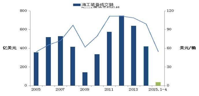 2005-2014年油價與海工裝備市場投資額相關(guān)性