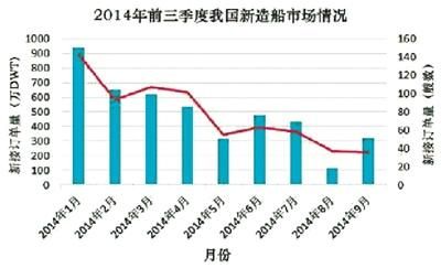 據(jù)克拉克松統(tǒng)計(jì),2014年前三季度,我國造船新接訂單691艘,4399萬載重噸,占到全球新接訂單量(以載重噸計(jì))的48.3%,較2013年全年我國占全球新接訂單占比47.7%略有提高。