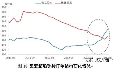 集裝箱船方面,班輪公司在上一輪大型船訂造熱潮中,主要通過自有資金進行訂造。隨著班輪公司運力升級的持續(xù)推進,新一輪訂造在2012年末再次啟動,推動集裝箱手持訂單量開始回升。但由于班輪公司運營持續(xù)艱難,自有資金訂造能力受到大幅削弱,卻又不得不進行運力升級以保持市場份額,從而借助獨立船東的力量發(fā)展運力,導致集裝箱船手持訂單的結構發(fā)生很大變化,獨立船東手持訂單量逐步超過運營船東,同時也推動融資租賃交易數量和融資額大幅增長。