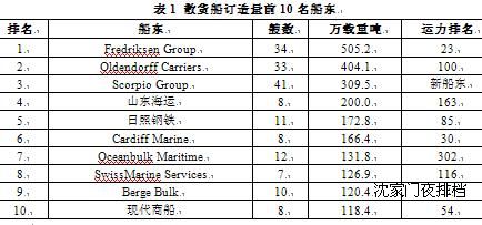 散貨船方面,訂造量前10名船廠中,僅Berge Bulk船隊保有量排名比較靠前,Scorpio Group是散貨船市場的新進入者,Oldendorff Carriers、山東海運、Oceanbulk Maritime和SwissMarine Services等船東的運力排名都在百名開外。而船東散貨船大船東如中海集團、Angelicoussis并未訂造,日本郵船、中遠集團、川崎汽船和商船三井則僅有2-4艘的少量訂造。
