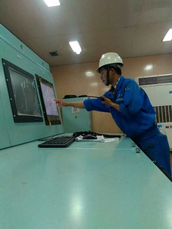 推開集控室的門就被一個人的氣場所吸引,身材一點(diǎn)兒都不魁梧但給人絕對精悍的感覺,他就是輪機(jī)調(diào)試員梁桂明。畢業(yè)兩年,早已不再是那個跟在師傅身后的懵懂少年,現(xiàn)獨(dú)立負(fù)責(zé)BS09船的遙控閥、液位遙測、壓載水等項(xiàng)目的調(diào)試工作。從艏部空艙到貨艙、壓載艙、管弄、邊空艙……據(jù)說每一個艙室都是體力活,當(dāng)被問到累不累的時候他卻笑著說“不累,就當(dāng)鍛煉身體了。”