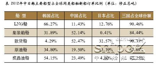 近些年世界造船業(yè)主要被中國和韓國所壟斷,韓國船企具有生產高附加值產品的優(yōu)勢,而中國船廠具有低成本的優(yōu)勢。從目前的形勢分析,中國造船業(yè)的比較優(yōu)勢逐漸在消失。